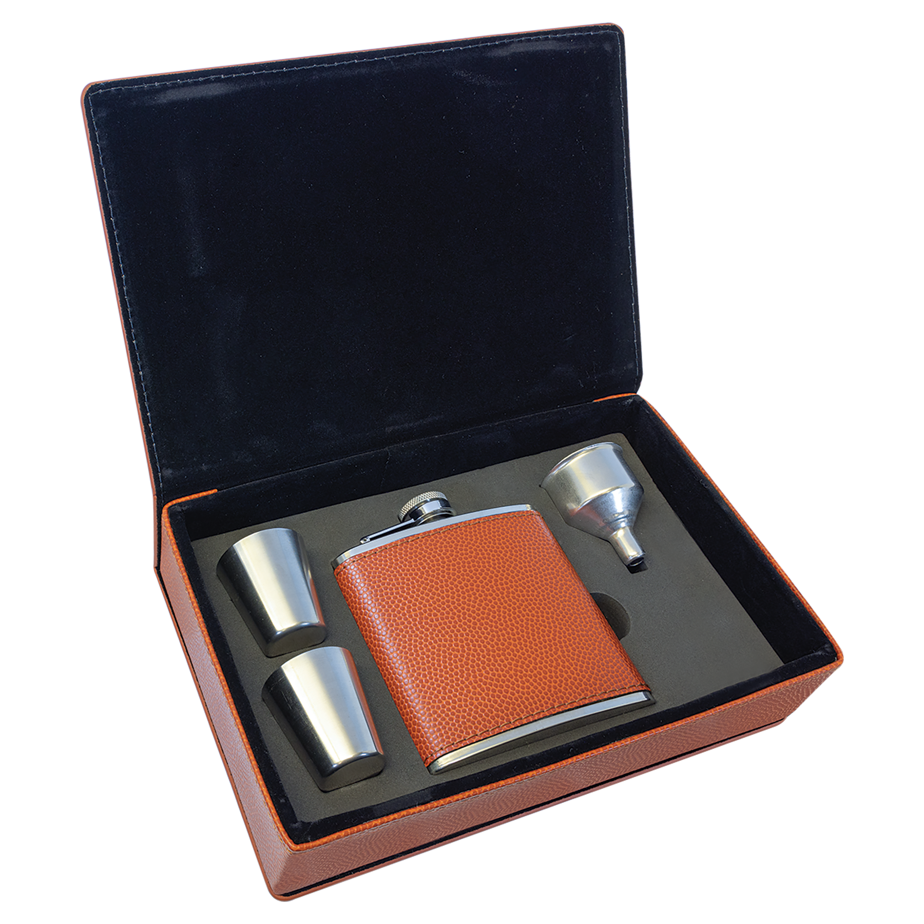 Cheers to a thoughtful gift that's perfect for any occasion! This laserable leatherette flask gift set is sure to delight your bridal party, friends, and loved ones. Stylish yet practical, it's the perfect accessory for any on-the-go celebration. Cheers!