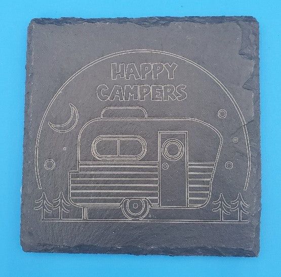 Happy Campers 1 Square Laser Engraved Slate Coaster